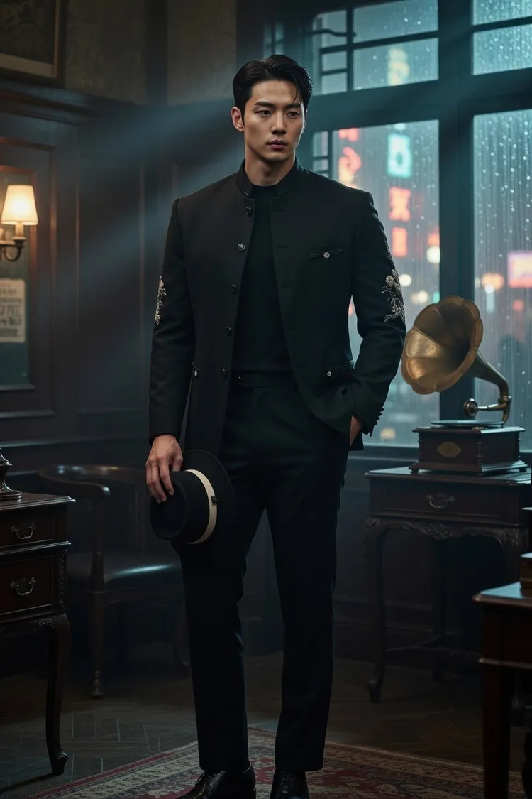Inspired by early Taiwanese men’s attire, the jacket is adorned with ribbon-stitched embroidery, reinterpreting a modest traditional look with refined texture and a modern Eastern sensibility.